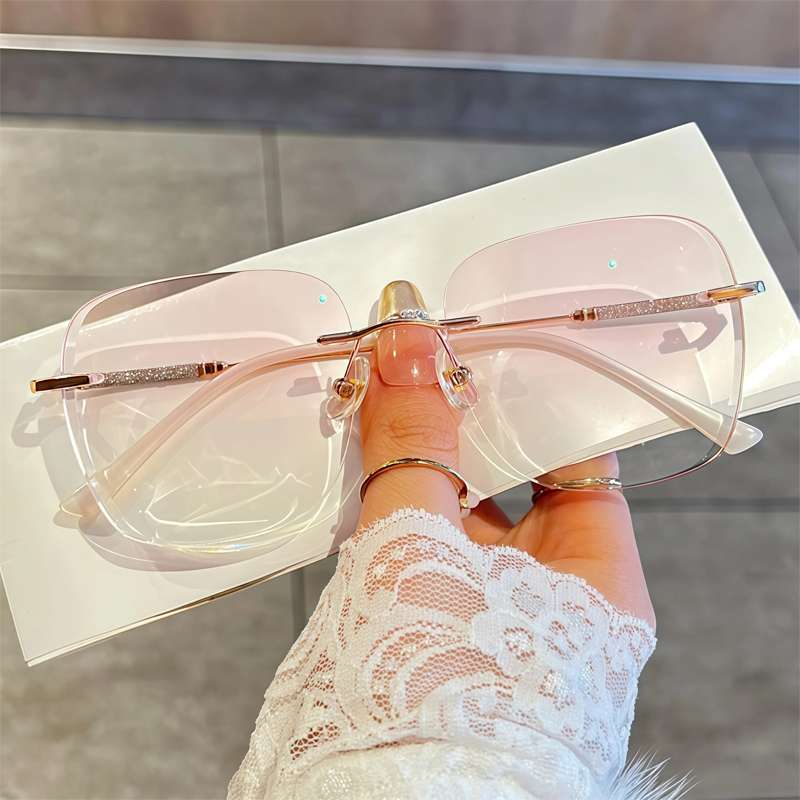 DESCRIPTIONPearl, a pair of stunning rose gold rimless eyeglasses, shows a feeling of nobility and elegance. Slim and delicate rose gold temples decorated with glitters add glamorous charm and a modern touch to these glasses. Gradient pink lenses just make everything more pretty. Adjustable nose pads and square lenses increase wearing comfort.