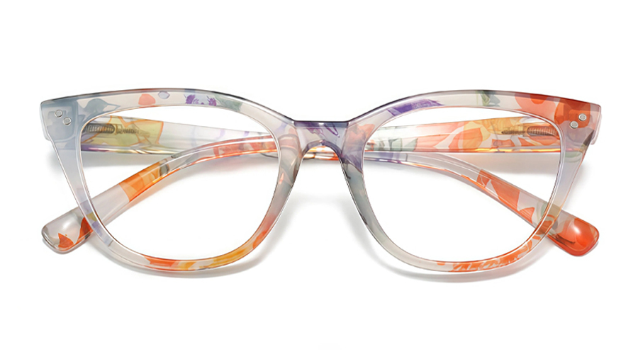 DESCRIPTIONPresent your personality with these bright floral cat-eye glasses. Made from soft plastic, this frame is ultra comfy and easy to wear all day long.