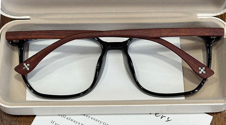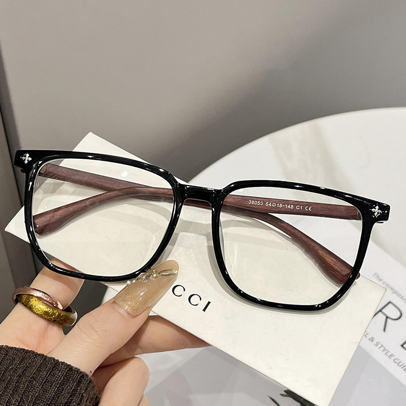 You indeed can't go wrong with a square look. Made from glossy TR90, this frame features a simplistic design that is surprisingly lightweight and comfortable. Integrated nose pads and wood grain temples add a retro feel.