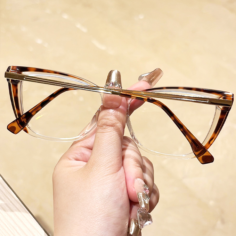 DESCRIPTIONBe part of the glamorous set in these perfect cat-eye glasses. This frame is made from glossy TR90 & metal and features a simplistic, surprisingly comfortable design. Spring hinges and integrated nose pads add flexibility and comfort.
