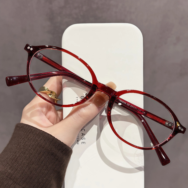 These timeless oval eyeglasses are crafted from lightweight, durable TR90 material. Equipped with adjustable nose pads for a personalized, comfortable fit, they deliver a classic, versatile look ideal for everyday wear or prescription use.
