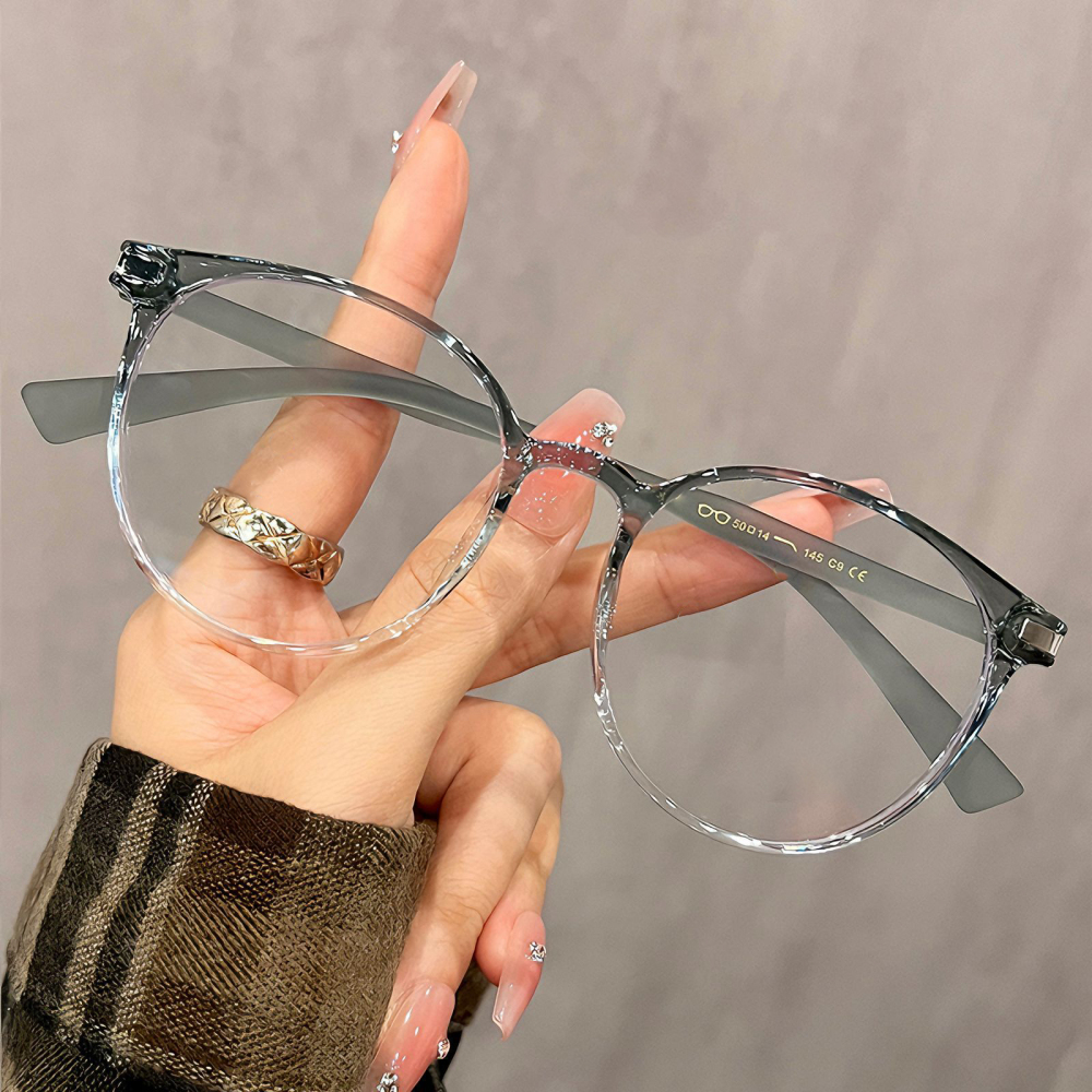 Elevate your everyday look with these trendy round-frame glasses, crafted from featherlight TR90 for all-day comfort! The seamless integrated nose pads prevent slipping, while the high-gloss frame and matte temples create a chic contrast. Perfect for work, weekends, or adding a touch of effortless sophistication to any outfit.