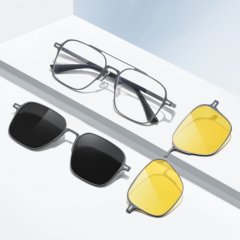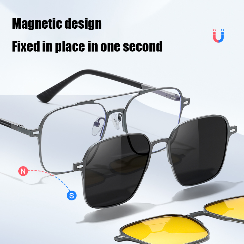 Upgrade your vision effortlessly with our 3-in-1 Magnetic Clip-On Glasses—the ultimate all-in-one eyewear solution. Switch seamlessly between prescription lenses, TAC polarized sunglasses, and night vision lenses with a simple magnetic snap. No more carrying multiple pairs—just sleek, adaptable style for every moment.