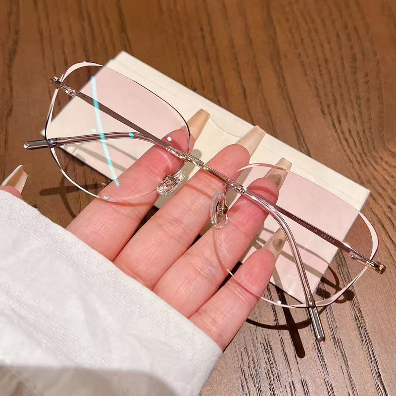DESCRIPTIONLightweight Titanium rimless glasses with soft gradient pink lenses—this piece features delicate rose-gold hardware and a modern angular shape. Ultra-durable yet featherlight, it elevates your daily look and delivers crisp, comfortable vision.
