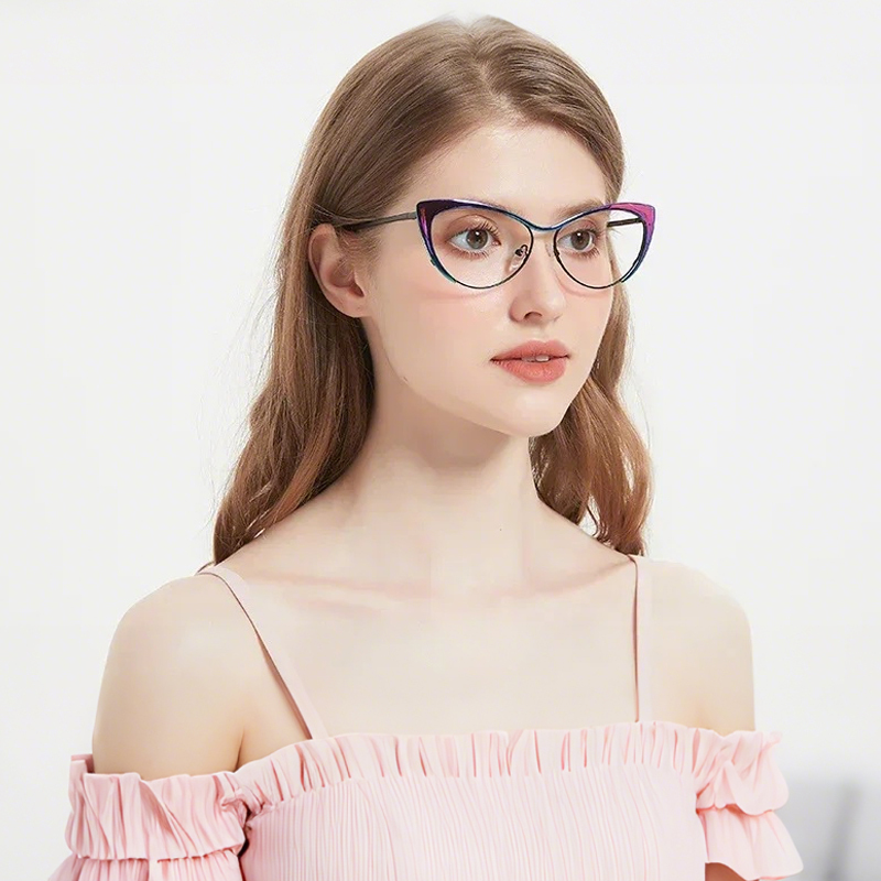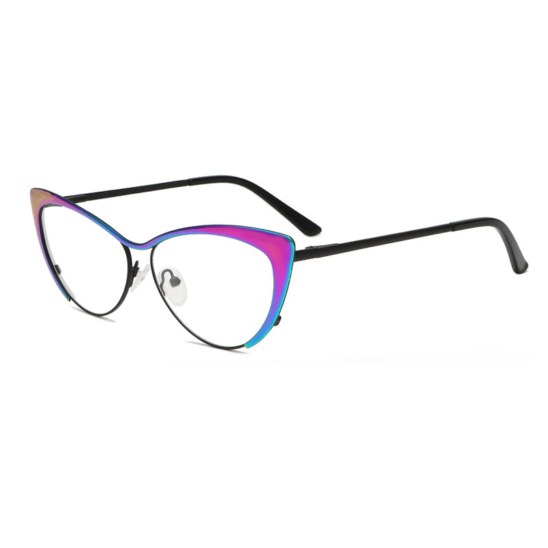 Add a little color to your everyday eyewear with these metal browline Cat-Eye glasses. Made from premium metal material, this frame features a simplistic design that is surprisingly comfortable. Besides, combined with a browline shape and aurora shiny finishes to highlight its unique style and depth. Adjustable nose pads and spring hinges provide a comfortable fit.