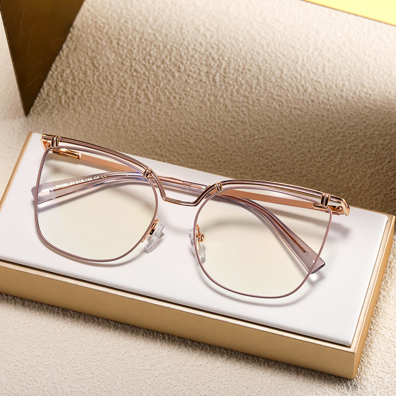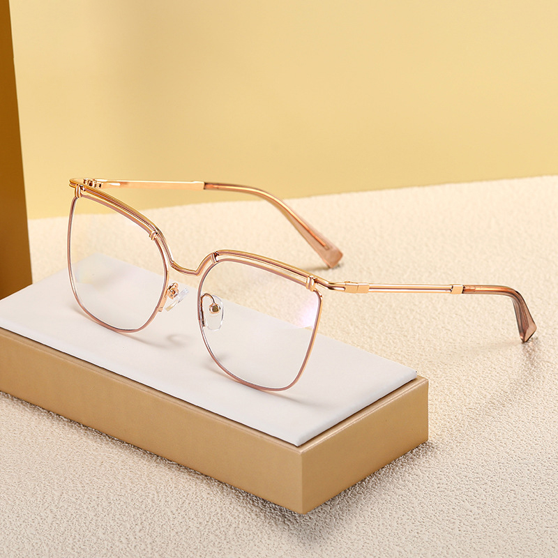 DESCRIPTIONStylish looks have texture, and these geometric glasses are no exception. Made from premium metal material, this frame features a classic design that is surprisingly comfortable. The flexible frame is fitted with spring hinges and adjustable nose pads for added comfort.