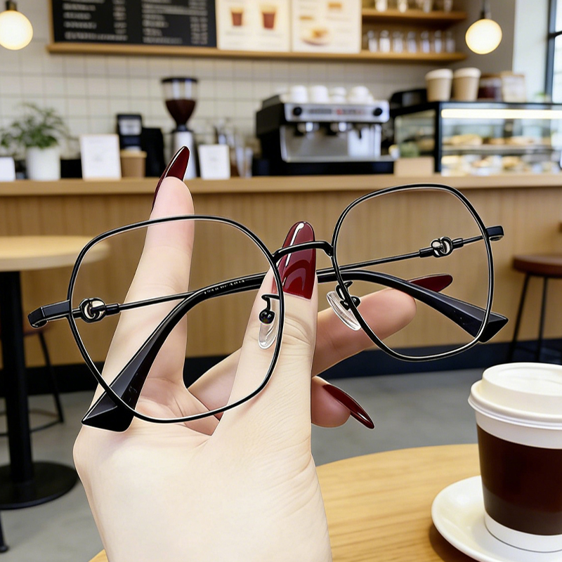 DESCRIPTIONIrregular design is the top choice for those who love an effortless, on-trend look. TR90 and metal construction make this frame flexible, and lightweight, featuring in any style. The delicately embellished temples lend a vintage look. Adjustable nose pads increase wearing comfort.