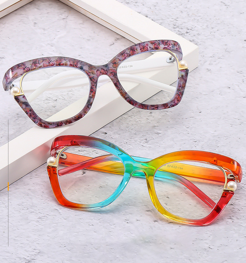 Try these chic cat-eye glasses on today! Made of high-quality materials, these cat-eye glasses with pearl ornaments add a stylish look. Durable temples can offer all-day comfort.