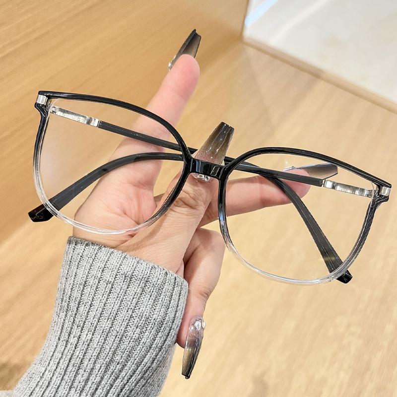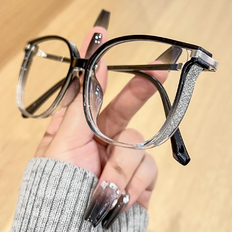 DESCRIPTIONShow your sophisticated side in these modern cat-eye glasses. The glitters on the side of the frame are a subtle way to stand out from the crowd. Made from glossy plastic, the lightweight frame features a simplistic design that is surprisingly lightweight and comfortable.