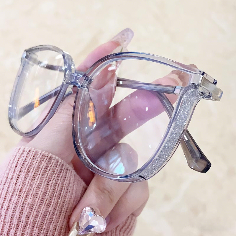 DESCRIPTIONShow your sophisticated side in these modern cat-eye glasses. The glitters on the side of the frame are a subtle way to stand out from the crowd. Made from glossy plastic, the lightweight frame features a simplistic design that is surprisingly lightweight and comfortable.