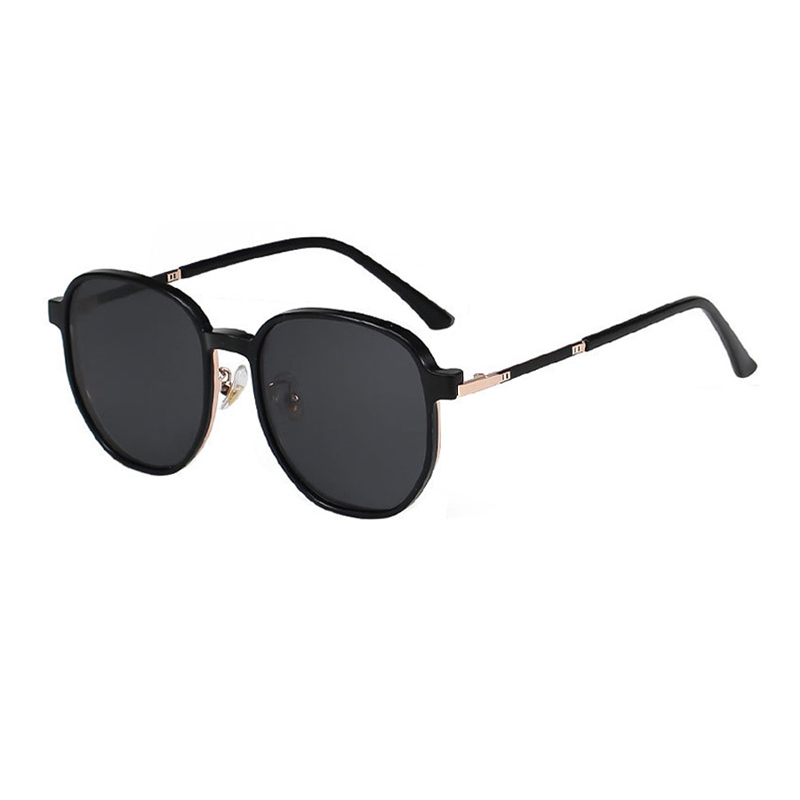 Feast your eyes on eyeglasses and sunglasses in one. These cleverly designed specs show off a square metal frame with a clip-on sunglass feature. For 2-in-1 glasses and sunglasses, the polarized TAC sunshade attaches easily at the corners with small magnets. For added comfort, the look is fitted with adjustable nose pads.