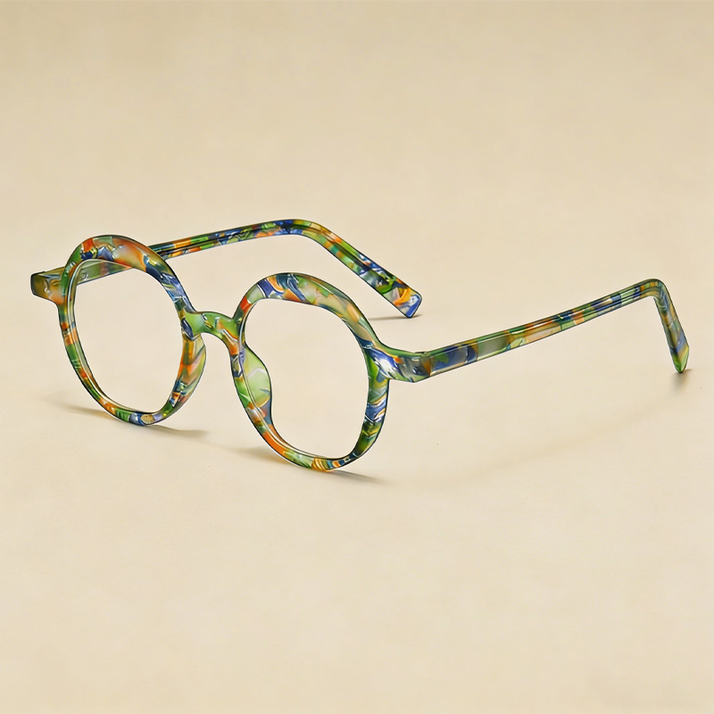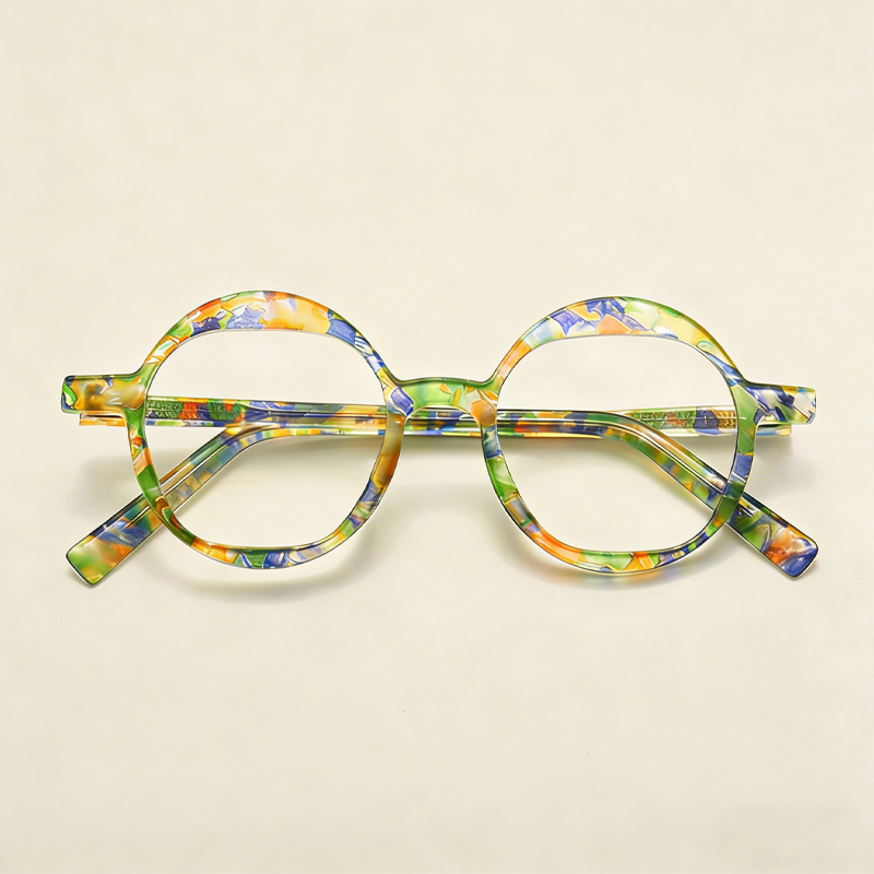 DESCRIPTIONClassic round frames have never looked, or felt, better. The glossy TR90 frame features a thick outer frame and temple arms. The floral frame features a simplistic design that is surprisingly comfortable.