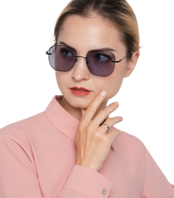 Photochromic Grey+Anti-Blue-Light Lenses: These rimless glasses feature Superflex lenses for impact resistance. Indoors, they are clear anti-blue-light glasses that block harmful blue light from digital screens. Outdoors, the lenses will change color from clear to grey and block UV rays.