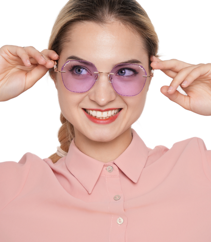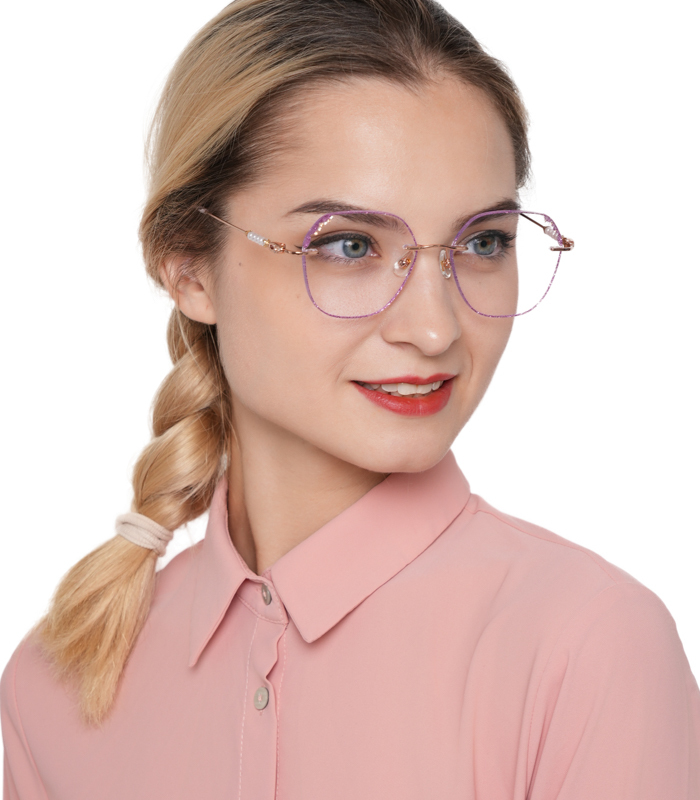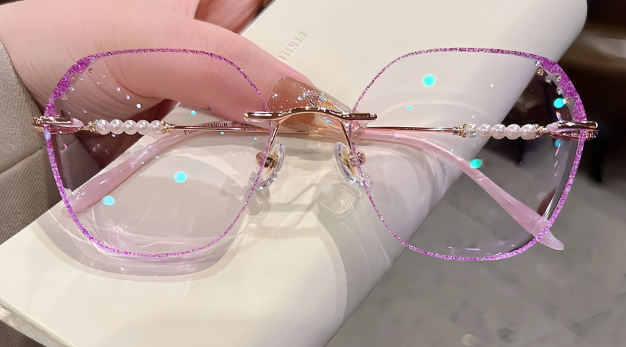 DESCRIPTIONDreamy is a pair of rimless glasses unmatched in glamour and finesse. These glasses come in Titanium and irregular rimless lenses. They are sturdy, ultra-lightweight, and corrosion-resistant. The glitters on the lens edges and pearl decoration on the arms give this frame a mysterious style.