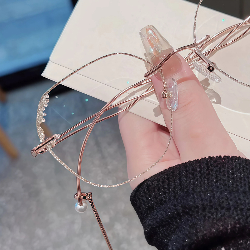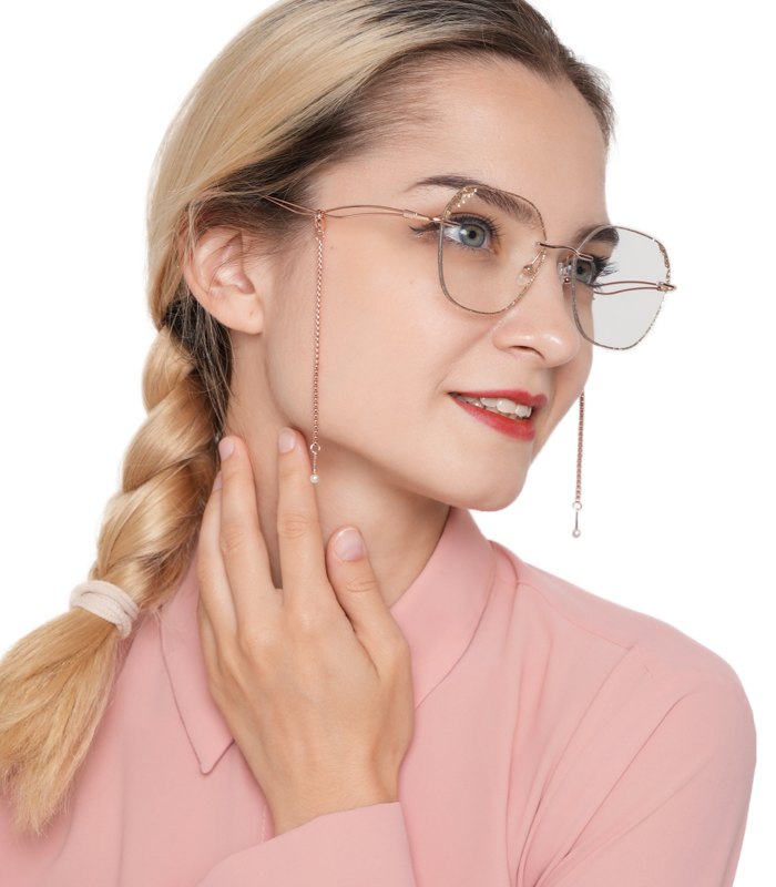 This fabulous frame feature doubles wavy metal temples with delicate chains for a retro look. The rhinestone details on the irregular lens edges are very eye-catching. Premium metal material and adjustable nose pads make them super light and comfortable.