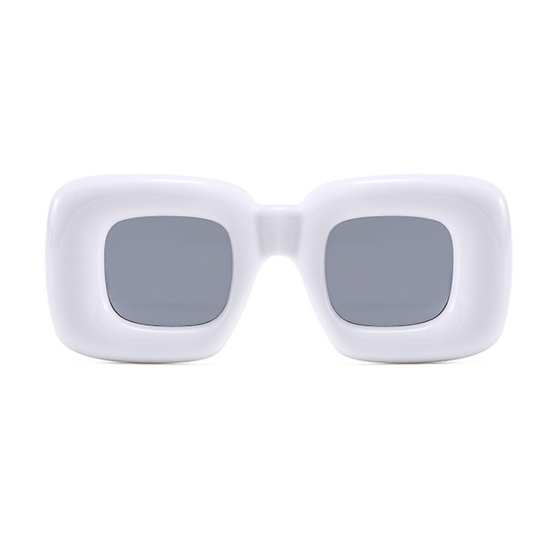 Make an iconic fashion statement with a pair of striking sunglasses. Take thick rims to a whole new level in these square funky glasses. The glossy hand-polished frame features bold style lines set against a simple color palette. These sunglasses with gray tinted lenses offer 100% UV protection and impact resistance.