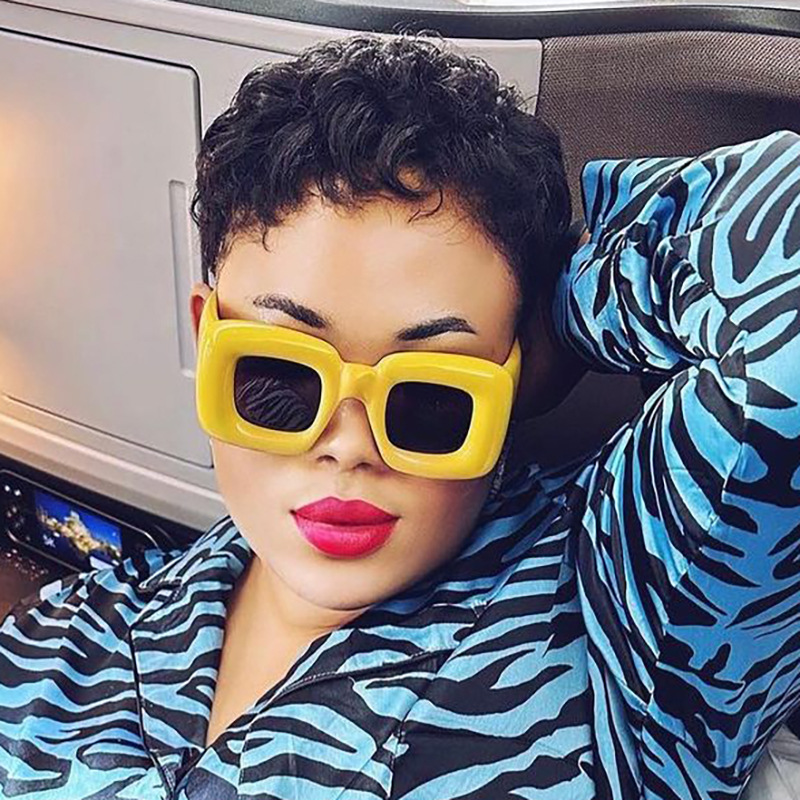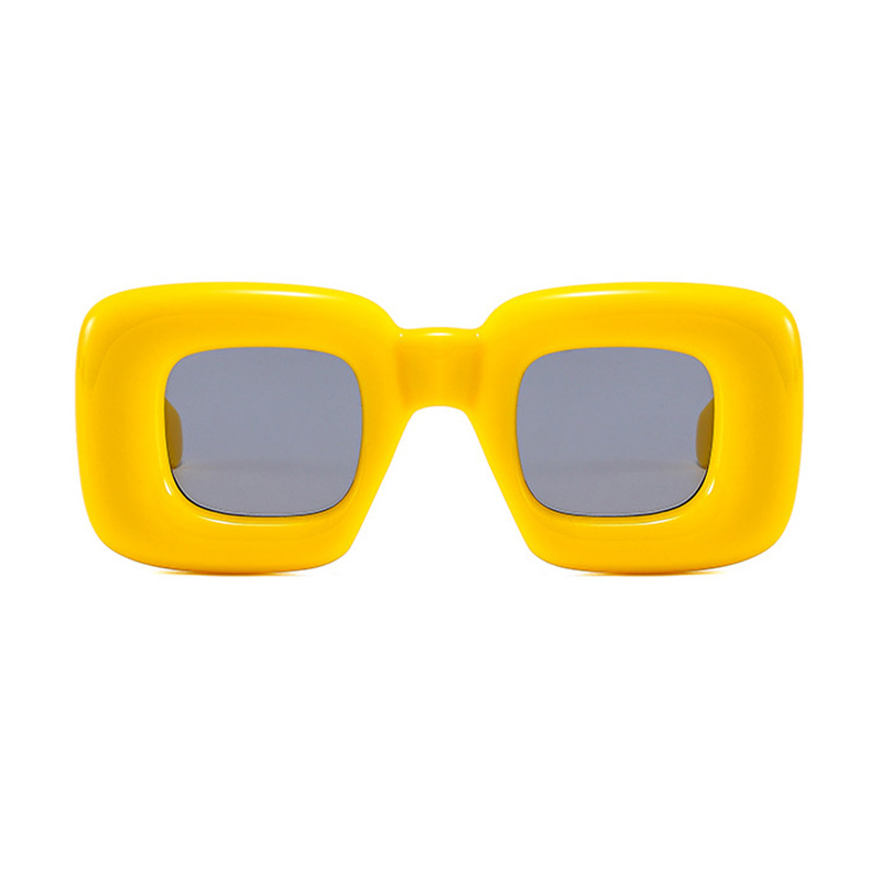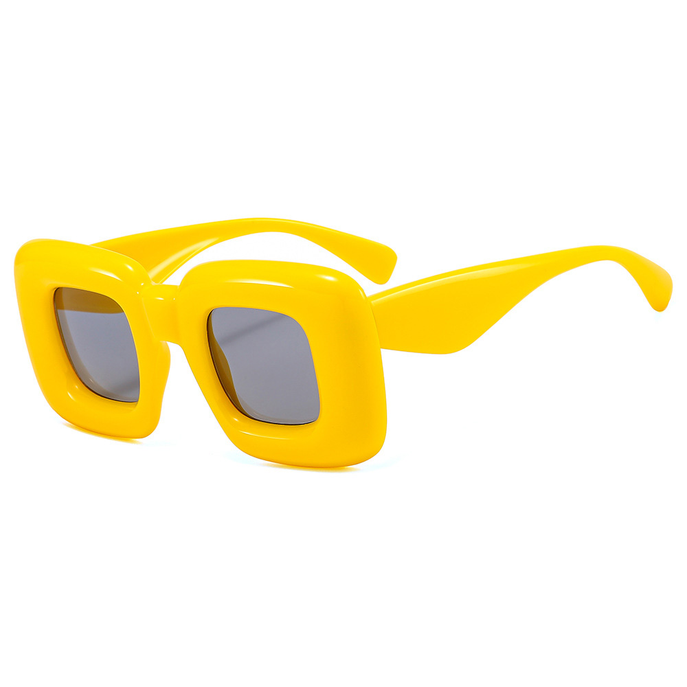 DESCRIPTIONMake an iconic fashion statement with a pair of striking sunglasses. Take thick rims to a whole new level in these square funky glasses. The glossy hand-polished frame features bold style lines set against a simple color palette. These sunglasses with gray tinted lenses offer 100% UV protection and impact resistance.