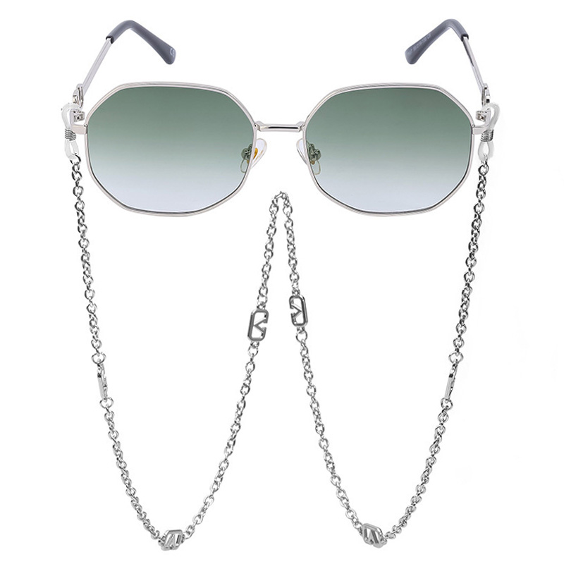 DESCRIPTIONThis geometric style will add subtle intrigue to your everyday look. The V-letter shape design and trendy chain accessories on the temple add an heir of sophistication to these sunglasses. Soft temple tips and adjustable nose pads provide added comfort. These sunglasses with tinted lenses offer 100% UV protection, anti-scratch, and impact resistance.