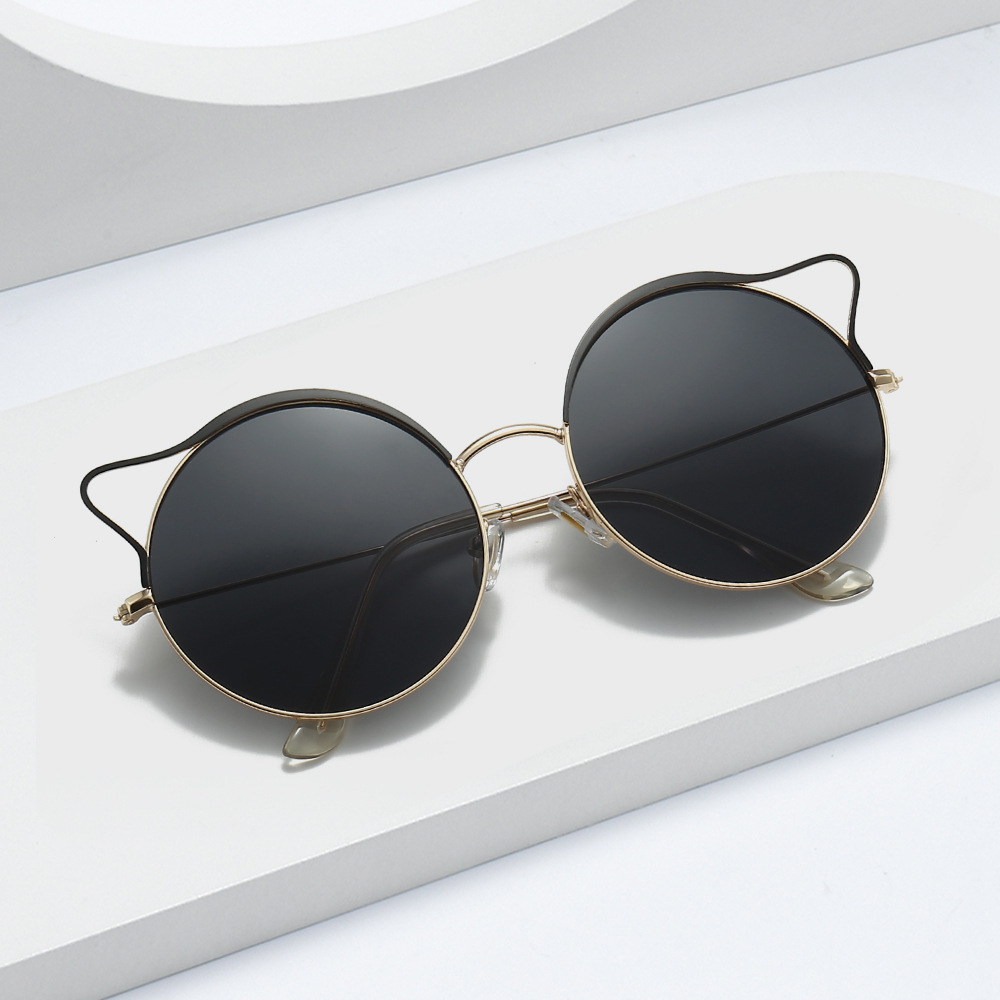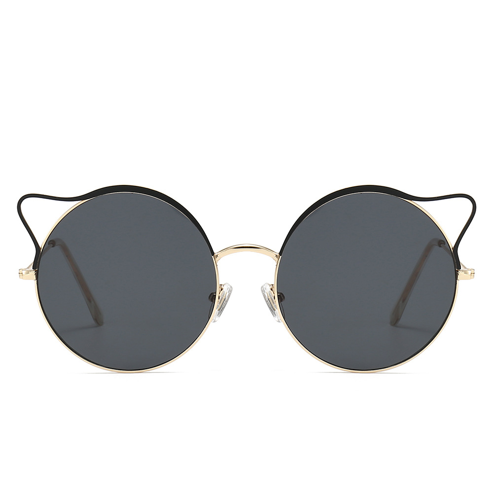 DESCRIPTIONAdd a bit of whimsy to your eyewear wardrobe with these metal cat-eye sunglasses. They feature round lenses with kitty ear accents on the outer corners. Adjustable nose pads provide a comfortable fit. These sunglasses with tinted lenses offer 100% UV protection, anti-scratch, and impact resistance.